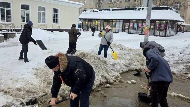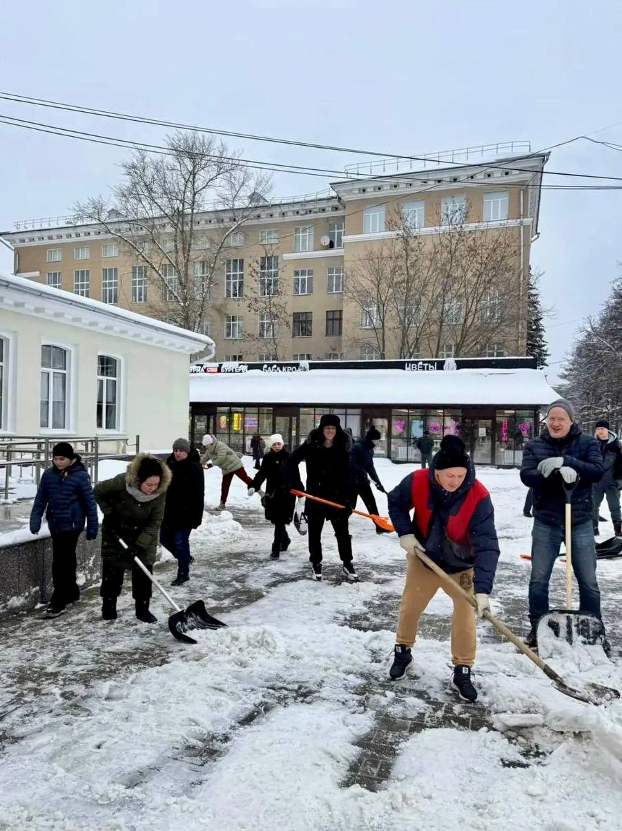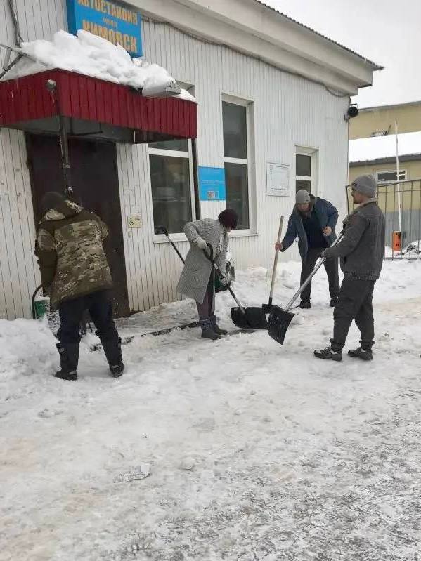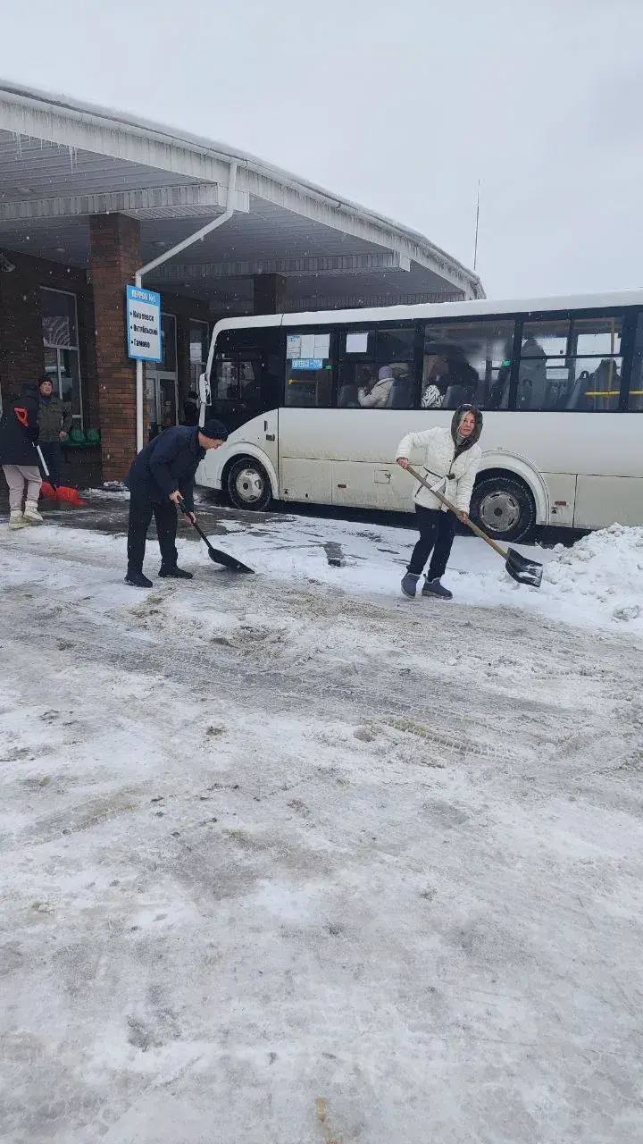 Общими силами расчищали от снега и наледи территории вокруг автовокзалов и социально значимых объектов.